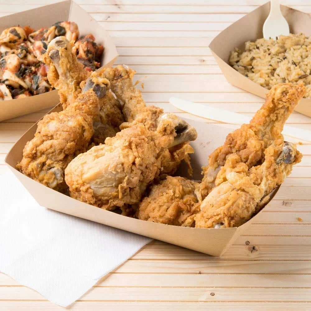 Khay đựng thức ăn bằng bìa cứng của Shenglin Packaging ở Trung Quốc rất lý tưởng cho các loại thực phẩm nóng và lạnh, chẳng hạn như bánh mì kẹp thịt, bánh mì sandwich, xúc xích, khoai tây chiên, đồ ăn nhẹ. Khay đựng thức ăn bằng bìa cứng có khả năng chống nước và dầu mỡ.Khay đựng thức ăn bằng bìa cứng có thể được sử dụng rộng rãi trong nhà hàng, dã ngoại, tiệc tùng, v.v.